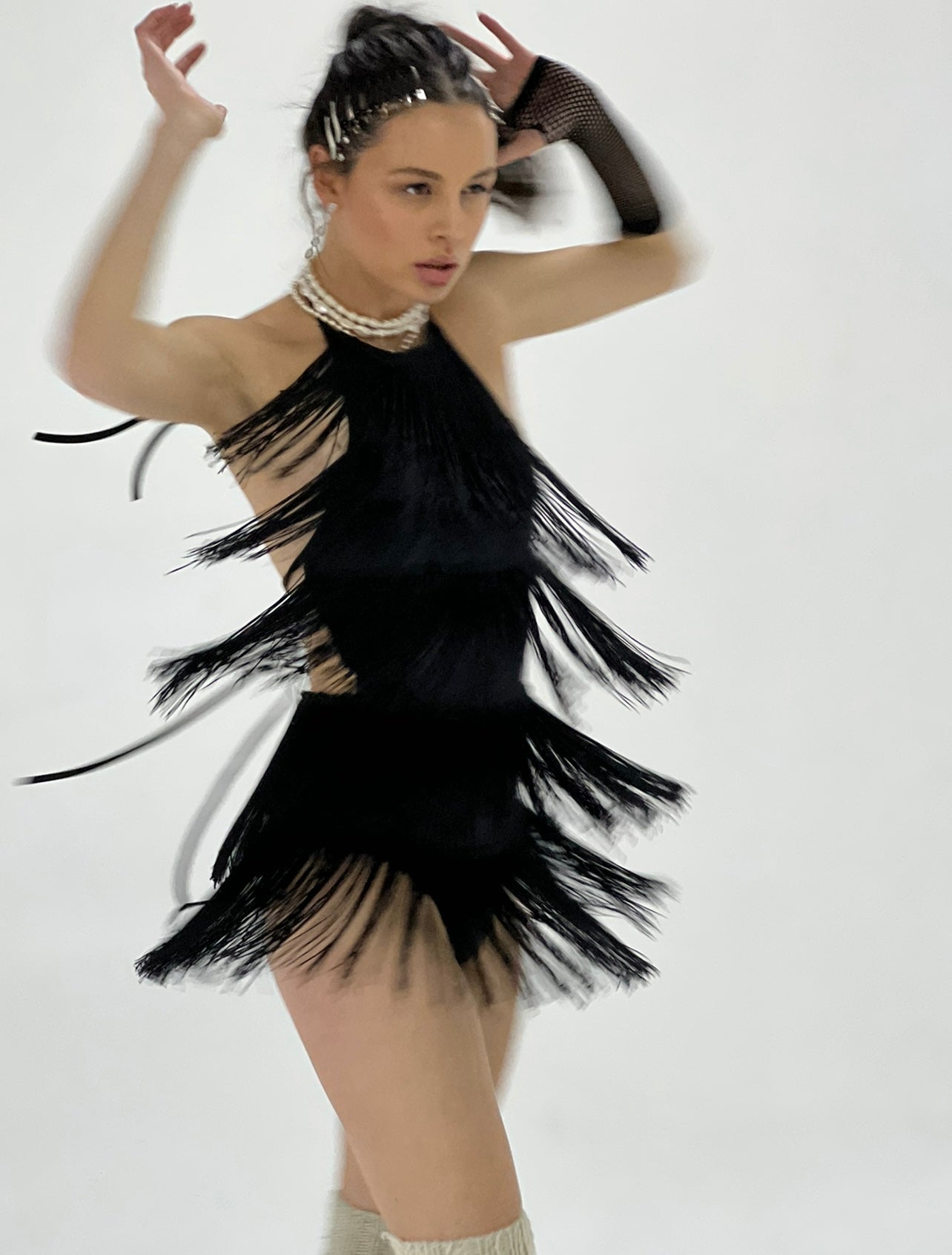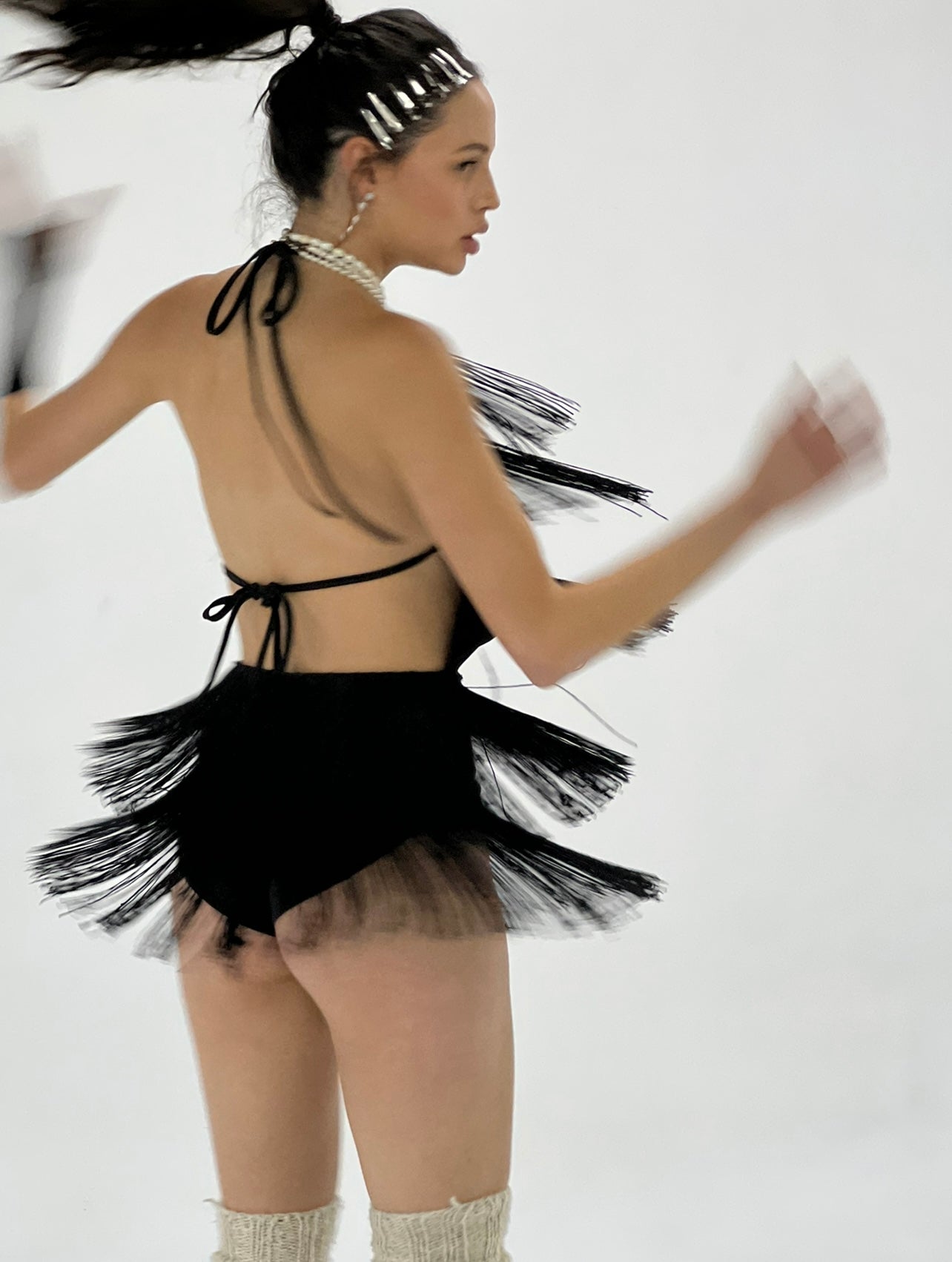 Mono negro con flecos y espalda descubierta